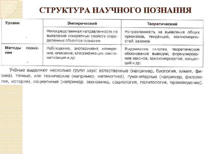 СТРУКТУРА НАУЧНОГО ПОЗНАНИЯ
