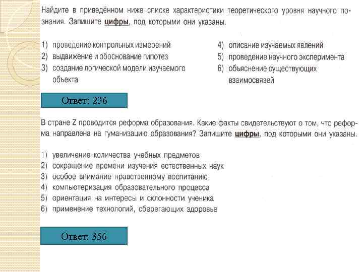 Ответ: 236 Ответ: 356