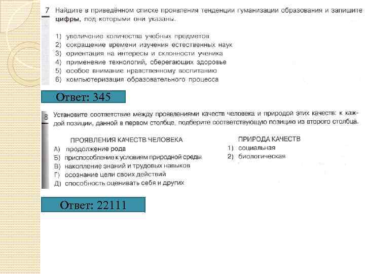Ответ: 345 Ответ: 22111