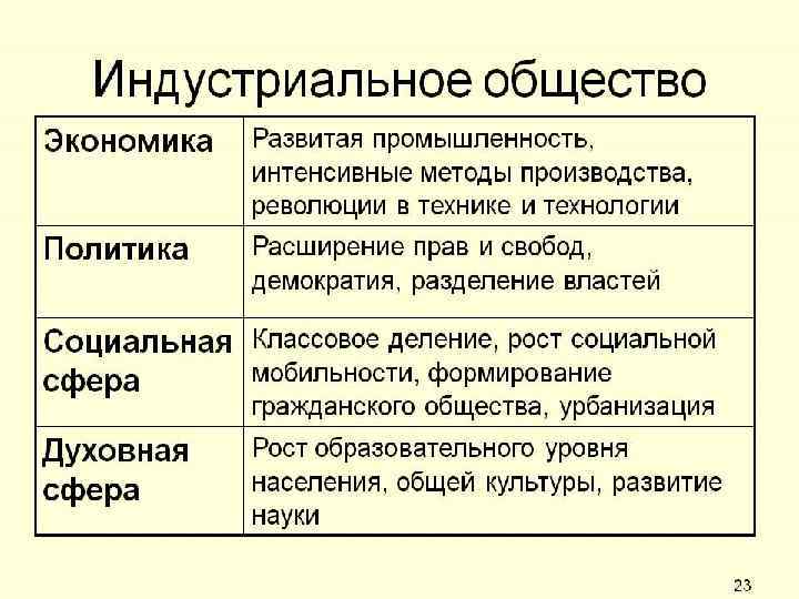 ИНДУСТРИАЛЬНОЕ Отрасль хозяйства Промышленность Темпы развития Быстро Общество делится на Классы Мобильность Психология Форма правления Отношение к природе ГЛАВНАЯ ЦЕННОСТЬ Высокая Индивидуализм Демократия, правовое государство Преобразует Капитал