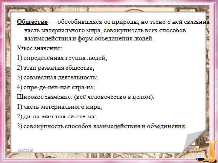 В науке обществом называют часть мира, отличающегося от природы.