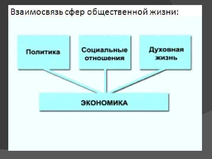 Основные сферы жизни общества. Экономическая сфера - одна из важнейших сфер жизни общества. Экономическая сфера есть экономическое пространство, на котором организуется хозяйственная жизнь общества (страны), осуществляется взаимодействие сфер экономики, а также международное экономическое сотрудничество. Здесь непосредственно воплощается в жизнь экономическое сознание людей, их материальная заинтересованность в результатах своей производственной деятельности, а также их творческие способности. Здесь же реализуется деятельность институтов управления экономикой. В экономической сфере осуществляется взаимодействие всех объективных и субъективных факторов развития экономики. Значение данной сферы, по мнению многих (марксизм) является основополагающим для развития общества. Экономическая сфера включает в себя производство, распределение, обмен и потребление материальных благ. А именно, это есть: а) сфера функционирования материального производства, б) распределения материальных благ, в) обмена деятельностью, г) а также реализация всей совокупности производственных отношений людей, в том числе отношений собственности на средства производства. Экономическая сфера диалектически взаимосвязана с другими сторонами жизни общества (политической, духовной, социальной), активно влияет на них. Важное значение в экономической жизни общества играет способ производства материальных благ.