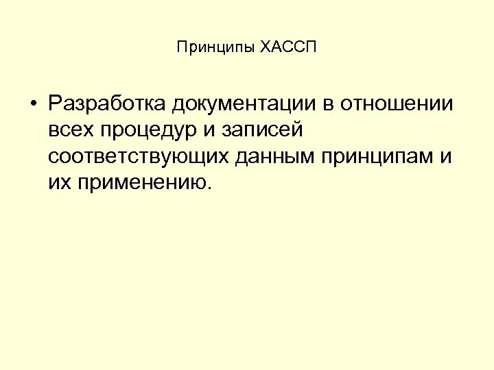 Принципы ХАССП • Разработка документации в отношении всех процедур и записей соответствующих данным принципам и их применению.