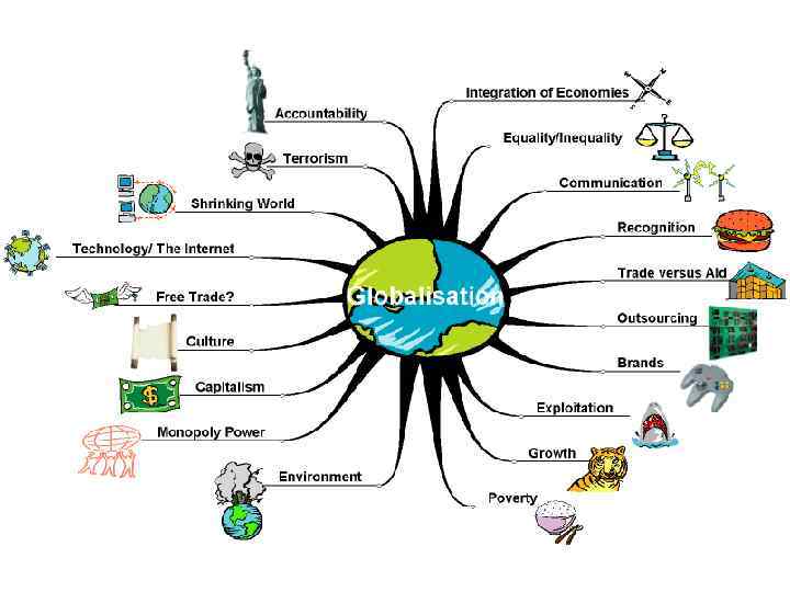 Целостность и противоречивость современного мира • Глобализация – исторический процесс сближения государств и наций, стирающий национальные границы и превращающий мир в единую систему; процесс интеграции государств и народов в разных областях деятельности. В ходе глобализации возрастает взаимовлияние и взаимозависимость народов и государств.