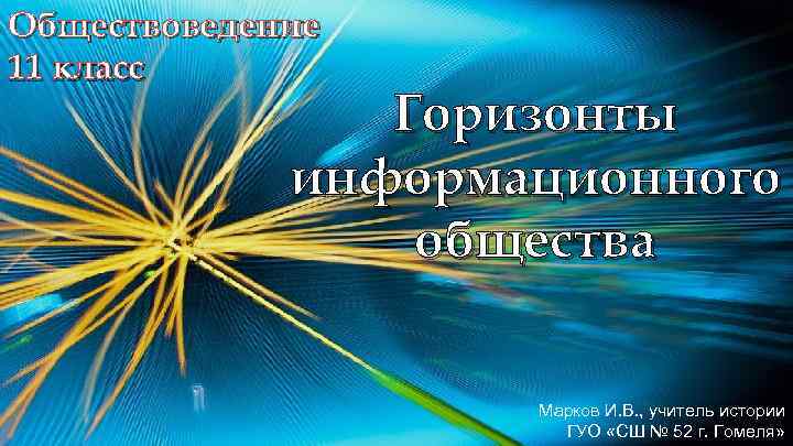 Обществоведение 11 класс Горизонты информационного общества Марков И. В. , учитель истории ГУО «СШ № 52 г. Гомеля»