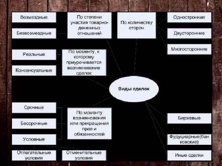 В зависимости от того, насколько при заключении сделки известны объем, уровень и соотношение встречного удовлетворения, сделки делятся на • коммутативные • и алеаторные (рисковые)