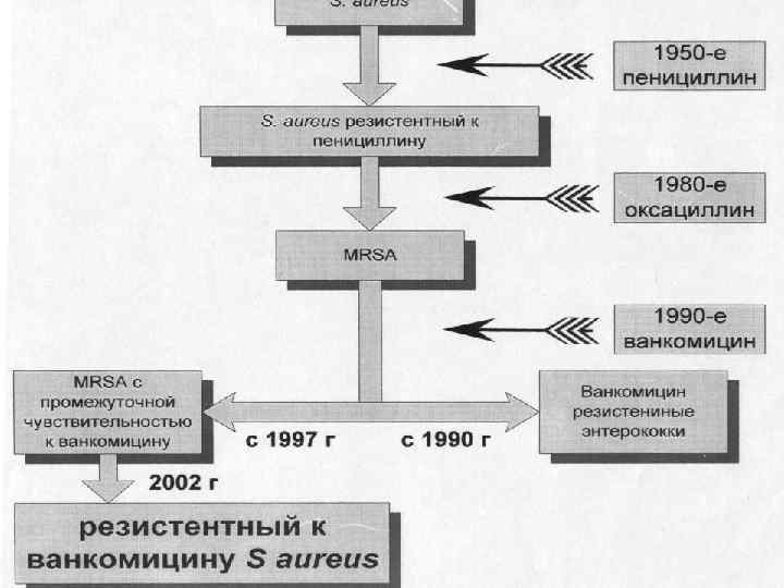 Резистентность к антибиотикам микроорганизмы приобретают в результате: снижения проницаемости клеточной стенки для антибиотиков; синтеза и выделения в окружающую среду веществ, разрушающих антибиотики (например, β-лактамазы); изменение мишеней (клеточных структур) для антибиотиков (например, пневмококк приобретает резистентность из-за изменения пенициллинсвязывающих белков клеточной стенки).