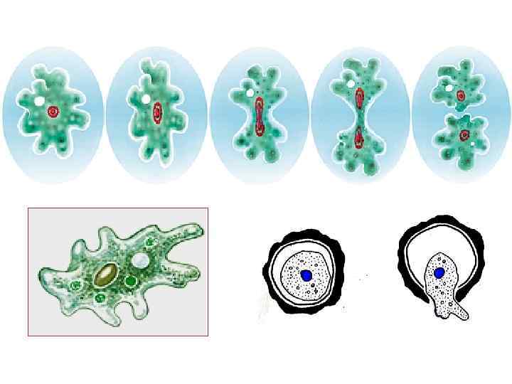Подтип Корненожки (Саркодовые) Класс Корненожки, класс Радиолярии, класс Солнечники. Размножение. Большинство видов размножается бесполым способом (митоз) Представители. Амеба обыкновенная, амеба дизентерийная, раковинные амебы, радиолярии, фораминиферы, солнечники.