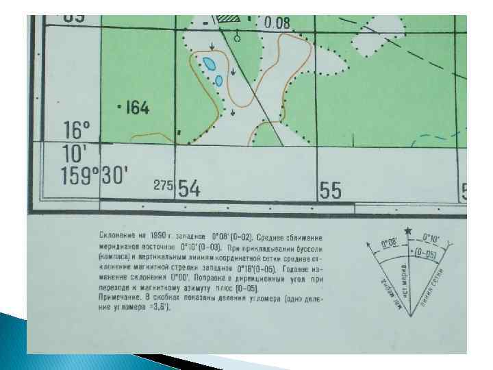 Магнитное склонение Это угол δ – между истинным и магнитным меридианами. Указан на схеме на год съемки карты α= Ам +δ - ɣ