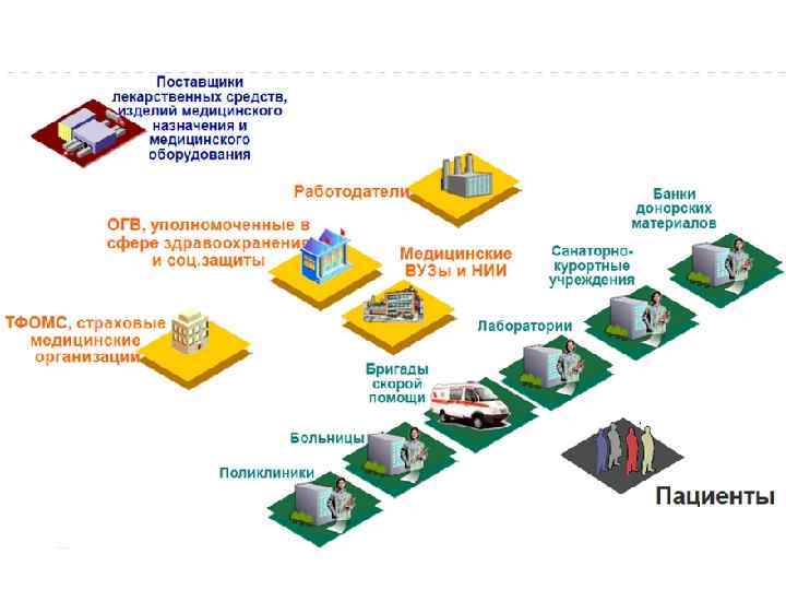 Типы лечебных учреждений. • Амбулаторно-поликлинические ØАмбулатории ØПоликлиники ØКонсультации ØДиспансеры ØЗдравпункты • Стационарные ØБольницы ØМедсанчасти(МСЧ) ØГоспитали ØКлиники ØРодильные дома • Санаторно-курортные