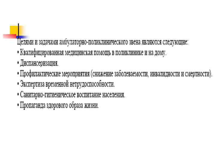 АМБУЛАТОРНО-ПОЛИКЛИНИЧЕСКАЯ МЕДИЦИНСКАЯ ПОМОЩЬ – 80% БОЛЬНЫХ Принцип работы – территориально-участковый