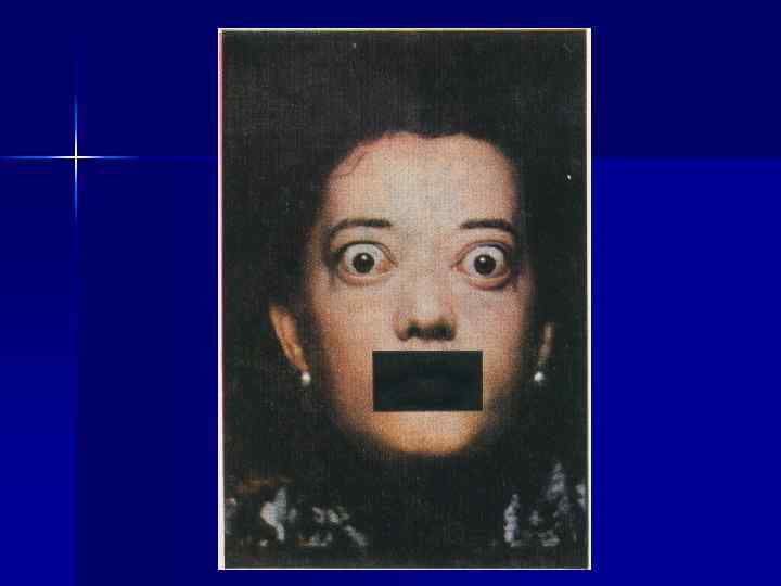 . n Отдельные глазные симптомы по авторам при тиреотоксикозе: Грефе – отставание век при вгляде вниз; Джофроя – при взгляде вверх нет образования складок кожи на лбу; Штелвага – редкое мигание глаз; Брауна – не происходит сужение глаз при смехе; Дейлримпля – экзофтальм и расширение глазной щели