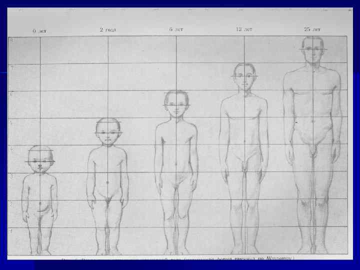 n n Это признаки уже сформировавшихся эндокринных заболеваний полностью с вовлечением в болезненный процесс и других органов и систем, следовательно, лечение и прогноз будут менее благоприятными. Необходима более ранняя диагностика заболевания! Детальный осмотр. Рост обсуждался ранее. Необходимо определять: 1. Пропорциональность отдельных частей тела; 2. Тип телосложения (мужской – продольный размер и вес тела больше, чем у женщин); 3. Степень развития подкожно-жировой клетчатки – ожирение простое (алиментарное), в основе которого лежат семейные причины. Зависимость расположения «жировой подушки» от пола. В норме у женщин более выражена в обл. плеч, таза, бедер и если такое ее расположение наблюдается у мужчин (феминизация), то можно предположить о нарушениях функции половых желез. Уменьшение этой «жировой подушки» у женщин (вирилизация) предполагает тоже самое. Эти изменения становятся заметней ранее, чем изменения наружных половых органов.