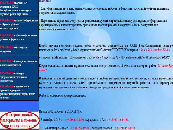 Организация участия студентов Белорусского государственного медицинского университета в XXIII Республиканском конкурсе научных работ Минск 2016 г.