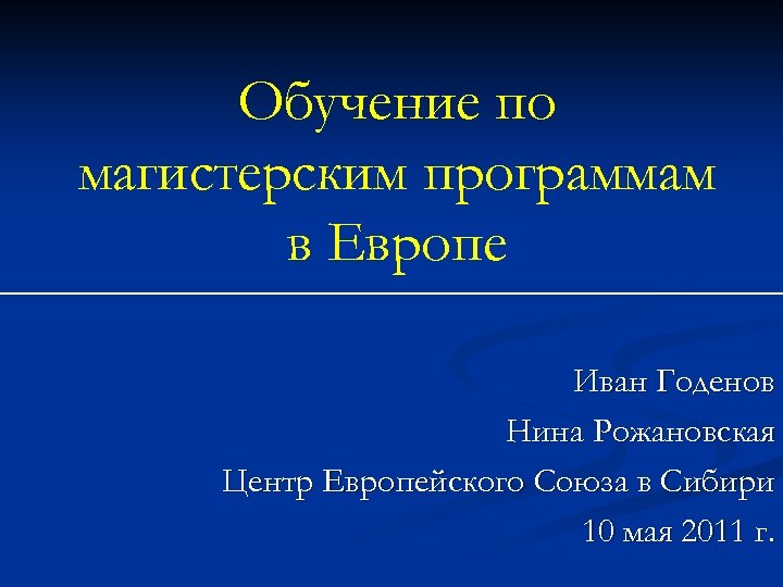 Обучение по магистерским программам в Европе Иван Годенов Нина Рожановская Центр Европейского Союза в Сибири 10 мая 2011 г.