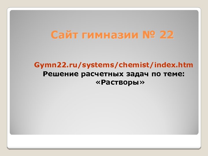 Сайт гимназии № 22 Gymn 22. ru/systems/chemist/index. htm Решение расчетных задач по теме: «Растворы»