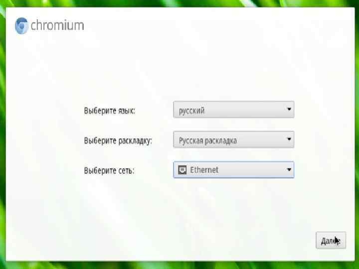 Авторизация в системе • О начале загрузки Google Chrome OS вы узнаете из появившегося на экране логотипа с надписью Chromium. Этой надписи на экране не стоит удивляться, ведь веб-браузер Chromium, взят за основу нашей версии Chrome OS, он также создан компанией Google и его единственное отличие от оригинального Chrome заключается лишь в открытости исходного кода. На нашем устройстве операционная система запустилась довольно быстро - от выбора загрузочного устройства до отображения окна с авторизацией прошло меньше 15 секунд. Однако на разных компьютерах время загрузки может быть различным, все зависит мощности процессора и скорости чтения данных с внутреннего накопителя.