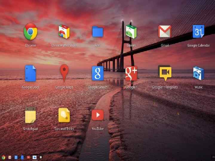 Установка дополнительных приложений • Традиционных программ как в операционных системах Windows 7 или Ubuntu Linux, в Chrome OS нет. Их заменило огромное множество миниприложений и плагинов для браузера Google Chrome. Некоторые из этих приложений, способны работать даже без активного подключения к интернету.