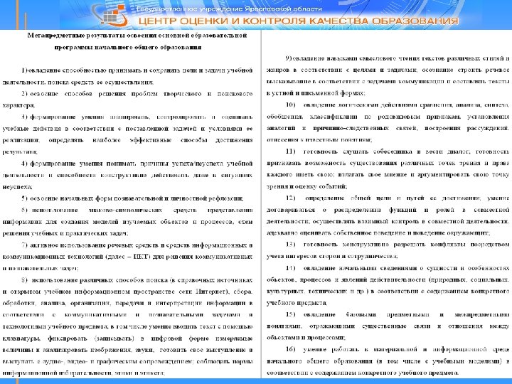 Оценка достижения метапредметных результатов обучающихся начальной школы Балуева Елена Борисовна, начальник отдела Крылова Светлана Сергеевна, главный специалист отдела организации итоговой аттестации и мониторинга качества образования ГУ ЯО «Центр оценки и контроля качества образования 8(4852) 30 -19 -04, 30 -20 - 74, +7 980 653 90 09 krylova@coikko. ru