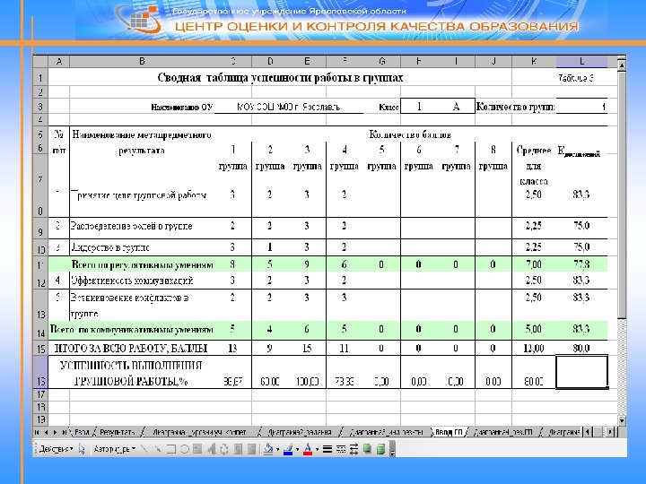 Оценивание проектной деятельности Во время проектной деятельности наблюдатели заполняют бланк наблюдения за работой группы, в котором прописаны различные способы действий детей в группе. При заполнении бланка используется критериальная система оценивания. Группа получает баллы только в том случае, если их действия полностью соответствуют заявленным критериям. По окончании групповой работы эксперты сдают учителю заполненные бланки. По бланкам наблюдателей учитель заполняет электронную сводную таблицу успешности работы в группах.