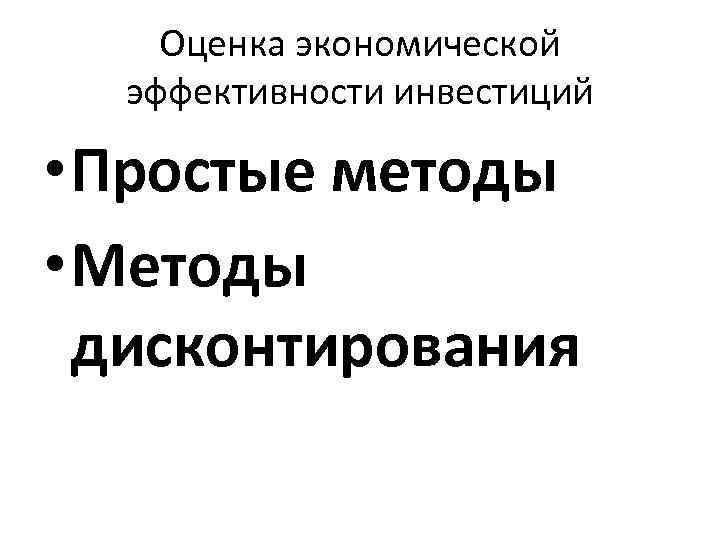 Оценка экономической эффективности инвестиций • Простые методы • Методы дисконтирования