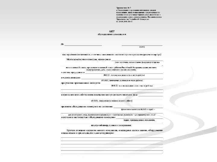 4) жилые помещения, расположенные в опасных зонах схода оползней, селевых потоков, снежных лавин, а также на территориях, которые ежегодно затапливаются паводковыми водами и на которых невозможно при помощи инженерных и проектных решений предотвратить подтопление территории. Многоквартирные дома, расположенные в указанных зонах, признаются аварийными и подлежащими сносу или реконструкции. 5) жилые помещения, расположенные на территориях, прилегающих к воздушной линии электропередачи переменного тока и другим объектам, создающим на высоте 1, 8 м от поверхности земли напряженность электрического поля промышленной частоты 50 Гц более 1 к. В/м и индукцию магнитного поля промышленной частоты 50 Гц более 50 мк. Тл. 6) жилые помещения, расположенные в многоквартирных домах, получивших повреждения в результате взрывов, аварий, пожаров, землетрясений, неравномерной просадки грунтов, а также в результате других сложных геологических явлений, если проведение восстановительных работ технически невозможно или экономически нецелесообразно и техническое состояние этих домов и строительных конструкций характеризуется снижением несущей способности и эксплуатационных характеристик, при которых существует опасность для пребывания людей и сохранности инженерного оборудования. Указанные многоквартирные дома признаются аварийными и подлежащими сносу.