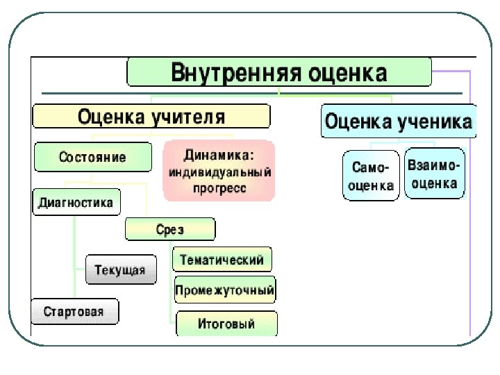 Система оценки учебных достижений Внутренняя оценка Внешняя оценка