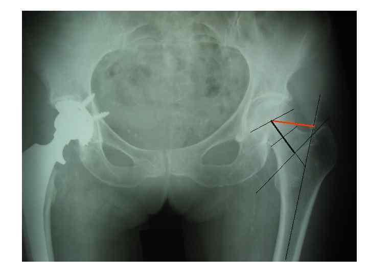 Средние значения показателей формы и размеров бедра в норме Мужчины Женщины 38, 3 42, 6 Ширина шейки 40, 3 35, 6 Индекс шейки 0, 90 1, 11 ШДУ 133, 4 129, 0 Длина шейки