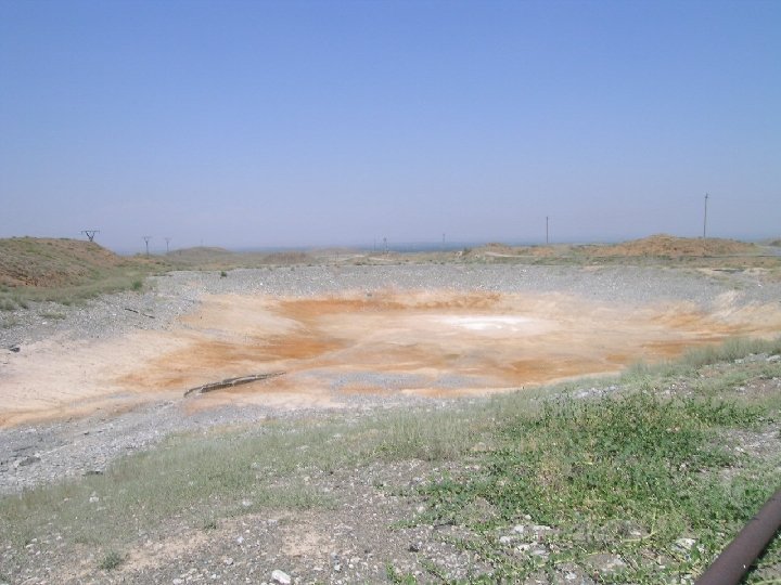 Территория соленакопителей прилегает к восточным холмам хребта Катранбаши и располагается в пределах безымянного сая, имеющего направление на север и северо-восток. Рельеф площадки холмистый, с общим понижением на северо-восток. Абсолютные отметки поверхности изменяются от 1020 м до 1250 м. Площадь сложена коренными породами, представленными сланцами, местами с прослоями известняков и конгломератами, обнажающимися на поверхности в виде небольших гребней. Со дня ввода в эксплуатацию в соленакопители сброшено около 360 тыс. м 3 выбросного электролита. Зона поверхностного поражения составляет 49, 79 га. От края зоны до границы Республики Узбекистан – 50 м. Из-за допущенных нарушений при строительстве и в процессе эксплуатации происходит утечка электролита, который попадает в реку, что помимо пагубного воздействия на окружающую среду, может привести к межгосударственному конфликту с соседним Узбекистаном.