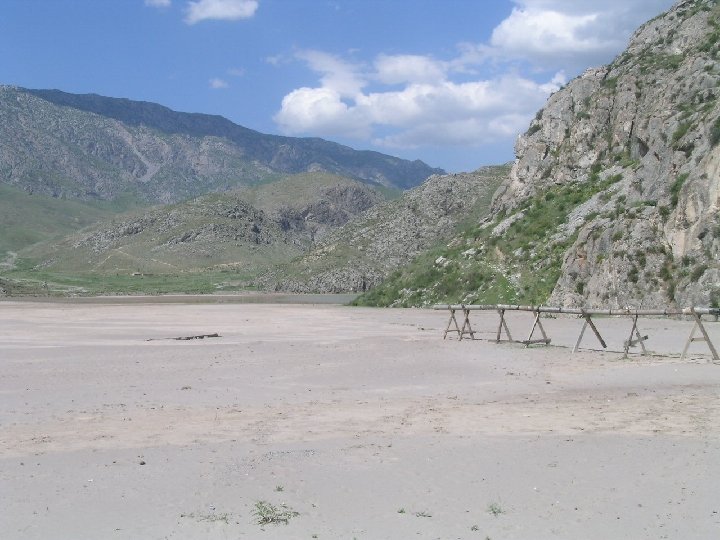 • Хвостохранилище расположена в долине сая Зархар. Долина имеет У-образную форму с очень крутыми склонами средний продльный уклон дна долины 0, 033. Дно сая сложено гравийногалечниковыми отложениями супесчанным заполнителем пор и щебенистым грунтом с суглинистым заполнителем пор. Берега сложены коренными породами- известняками, которые сверху по склону покрыты делювиальными суглинками мощностью 0, 5 -5, 0 м. Суглинки очень плотные, пылеватые, включают примесь грубообломочного материала. Коренные породы выветренны с поверхности и разбиты трещинами. • По данным разведочного управления грунтовые воды залегают на глубине 100 -150 м. • Ближайщий населенный пункт находится на расстоянии 730 м на более низких отметках.