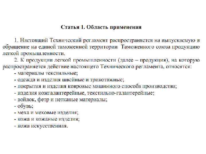 В связи с вступлением в силу с 1. 07. 2012 технического регламента Таможенного союза ТР ТС 017/2011 «О безопасности продукции легкой промышленности» указанная продукция, за исключением перечисленной в пункте 4 статьи 1 регламента, должна быть подвергнута процедуре подтверждения соответствия в формах сертификации или декларирования соответствия. Согласно приложению 1 к ТР ТС 017/2011 подтверждению соответствия подлежат как текстильные материалы, так и изделия из них.