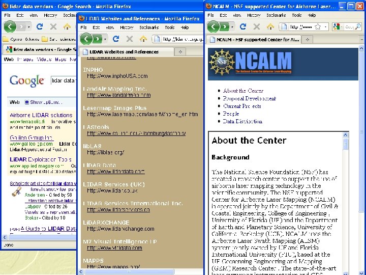 How to buy lidar data • You know somebody… A known quantity. Easiest • Advertise for bids Maybe you don’t know as much as you think • NCALM (http: //www. ncalm. org/) NSF sponsored, partly subsidized, limited capacity • Participate in a consortium Economies of scale, in-place contracting structure, community of experience Geographically limited • Start your own consortium Advertise for bids …