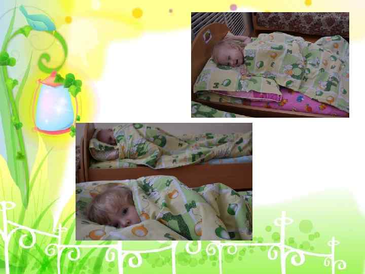 Тихий час. Спасть пора - моя кроватка Убаюкивает сладко. В спальне тихо и уютно, И заснуть совсем не трудно.