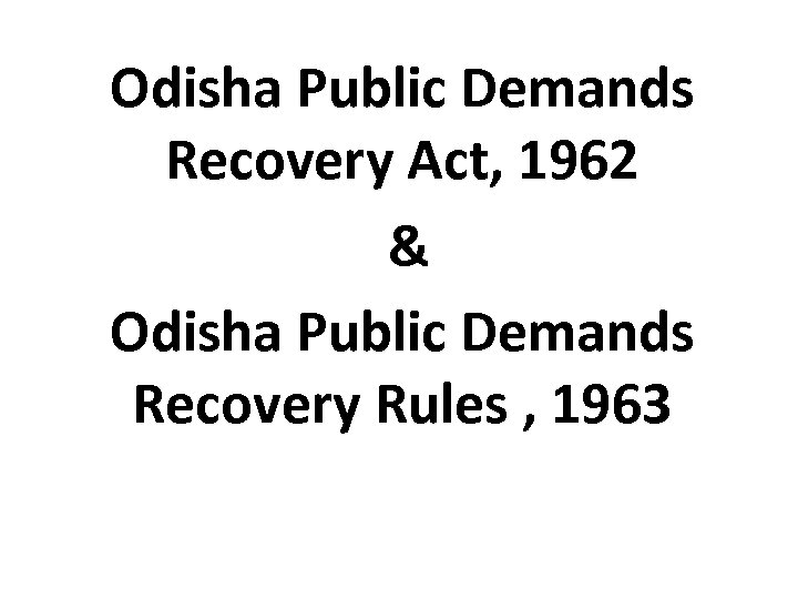 Odisha Public Demands Recovery Act, 1962 & Odisha Public Demands Recovery Rules , 1963
