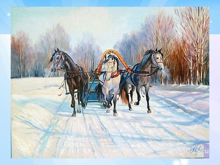 Тройка-символ русского народа и его культуры с ее безбрежной и пронзительной личностью О тройке поэты слагали стихи, народ сочинял частушки, художники увековечили ее в живописи и лаковой миниатюре, ваятели - в скульптуре. Тройка превратилась в достойный символ России, олицетворяющий русскую удалую и загадочную душу.