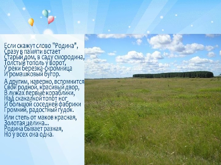 Что для меня родина? • Родина – это место, где я родился, где я живу, где жили мои предки. • Родина – это моя земля, мое небо, мой родной дом. Родина – это где все родное, понятное: язык, традиции, обычаи. • Где бы я не жил, Родина останется в моем сердце навсегда. • Моя Родина во мне. Я часть ее истории