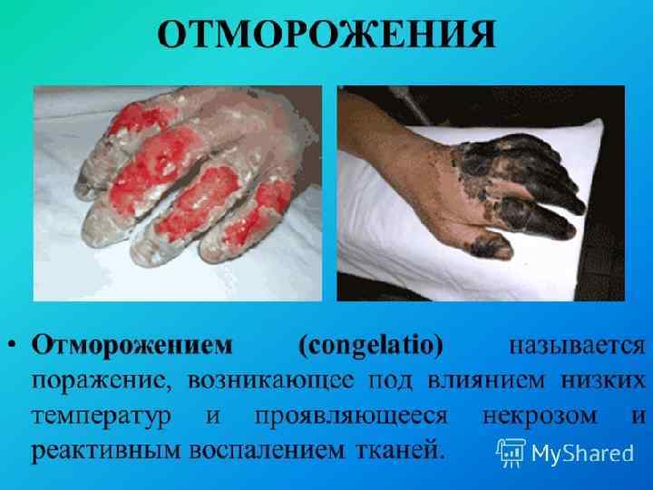 В зависимости от развития патологического процесса во време ни выделяют ва периода отморожения. д • 1 й период – скрытый, дореактивный, т. е. период воздействия холода. Патологические реакции, морфологические и клинические проявления минимальны; чаще всего можно наблюдать побледнение участка кожи и потерю чувствительности. • 2 й период – реактивный. Наступает после согревания отмороженной части тела. Все изменения, свойственные отморожению, проявляются полностью.