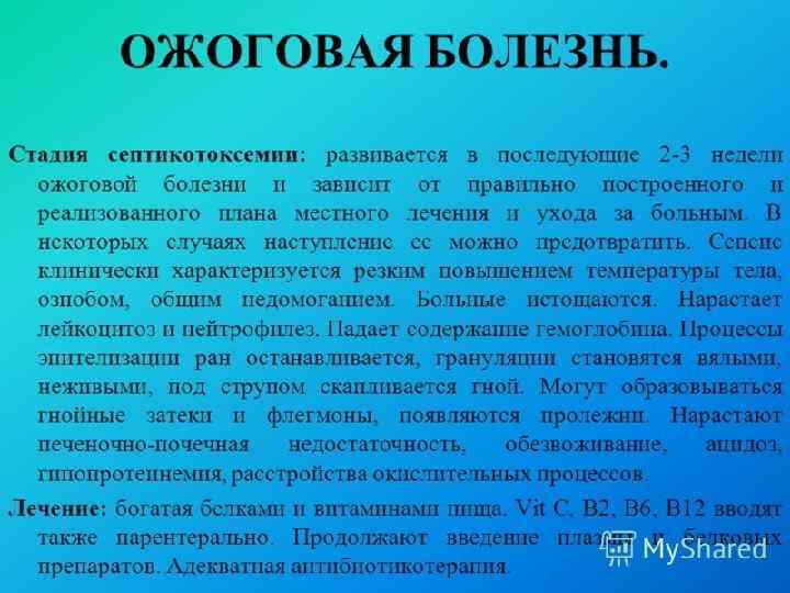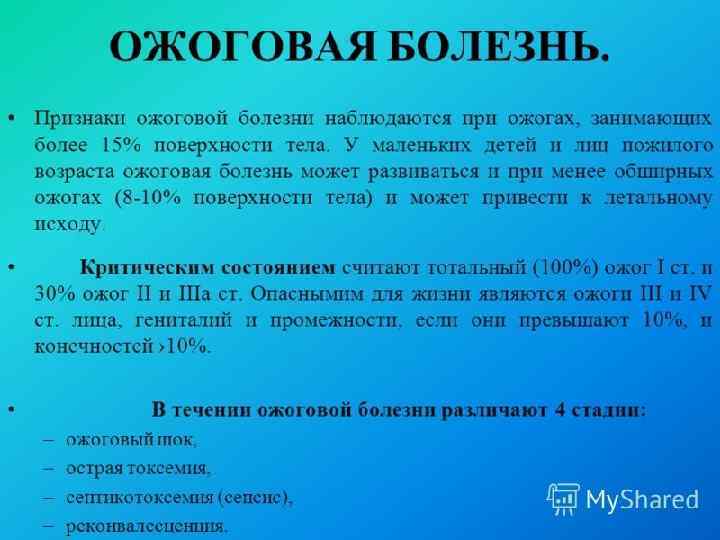 Одним из важных методов лечения ожоговой болезни является ЛФК, которая показана практически всем больным – независимо от степени ожога, его локализации и площади поражения. Физические упражнения оказывают тонизирующее, трофическое, нормализующее влияние на все системы организма. Наряду с этим, физические упражнения способствуют формированию компенсаций, временному или постоянному замещению нарушенных функций.