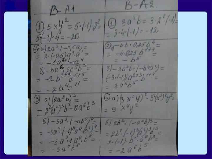 Одночлены Если в одночлене перемножить все числовые множители и поставить их произведение на первое место, а также перемножить все степени с одинаковыми основаниями, то получим одночлен в стандартном виде.