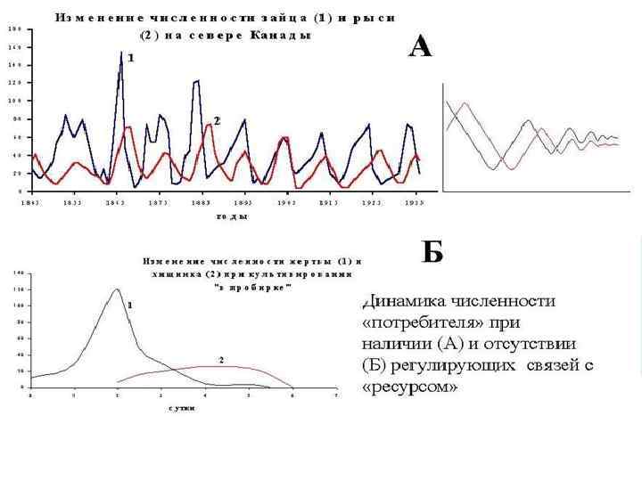 Рост численности популяции приводит к истощению запасов пищи, за которым следует снижение рождаемости организмов, увеличение их смертности (отрицательные связи), а следовательно, и снижение численности. Последнее в свою очередь увеличивает запасы пищи, что вызывает рост рождаемости и численности популяции (положительные связи).