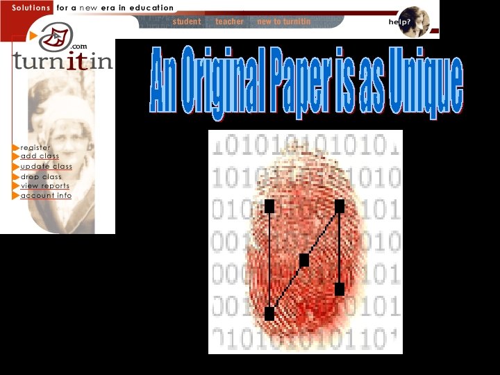 The solution to the Problem is Student turns in assignment to the teacher’s “mailbox” on the Internet. Turn It In. com Teacher is able to determine If the manuscript is plagiarized.
