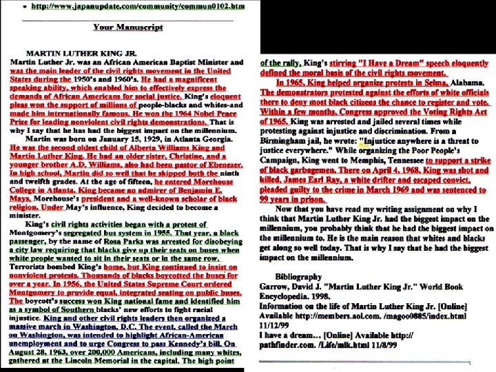 Student information The icon indicates the percentage of text taken from another source. The “ 3” shows the number of cheat sites. 3 The colors correspond to a list of URLs from where the text originated.