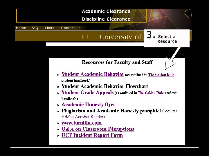 Cheating & Plagiarism: Consequences ACADEMIC ACTION * Taken by Instructor, Chair, or Dean of College* 1. Counseling 2. Loss of credit for specific assignment, examination or project. 3. Removal from course with a grade of “F” CONDUCT REVIEW ACTION *Taken by the Office of Student Conduct* 1. Suspension (for at least 1 term) 2. Expulsion 3. Permanent conduct record with UCF accessible by other institutions by request. 4. Educational Sanctions.
