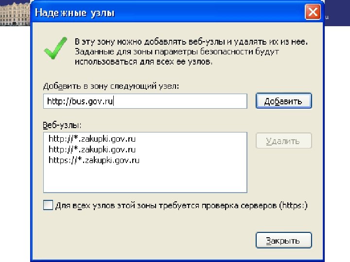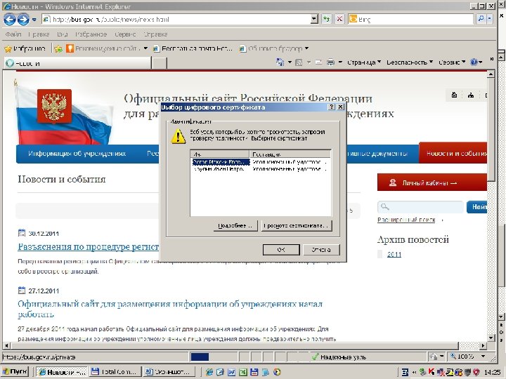 3. Подготовка рабочего места для работы с сайтом ГМУ Подготовка рабочего места для работы с сайтом bus. gov. ru осуществляется согласно «Инструкции по настройке рабочего места» . 1. Устанавливается ППО СКЗИ «Крипто. Про CSP» . 2. Устанавливаются сертификаты : личные, уполномоченного удостоверяющего центра, сертификат сайта (http: //bus. gov/ru/public/document/download. html? document=1008) 3. Настраивается Интернет-браузер.