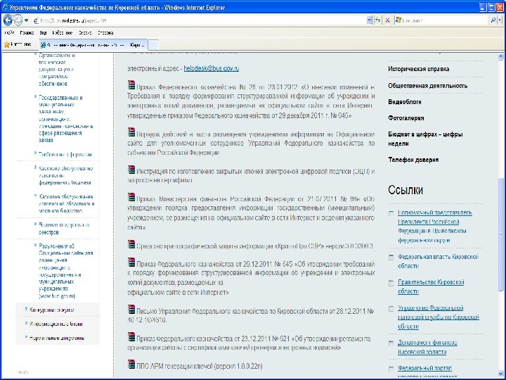 Руководящие документы и необходимое программное обеспечение для работы на Официальном сайте находятся на Интернет-сайте Управления (www. kirov. roskazna. ru) в разделе «Информация для клиентов – Разъяснения об официальном сайте для размещения информации о государственных и муниципальных учреждениях (www. bus. gov. ru)» и на официальном сайте Российской Федерации в сети Интернет для размещения информации о государственных и муниципальных учреждениях www. bus. gov. ru в разделе «Нормативные документы»