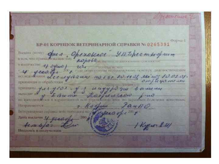 Ветеринарный сертификат (форма 4)