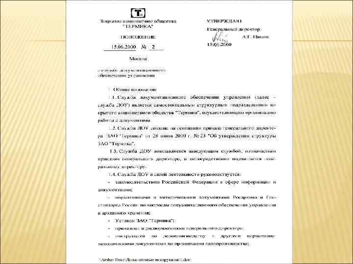 Положение ü ü ü ü ü Реквизиты: Наименование организации (наименование ведомства, структурного подразделения) автора документа; Наименование вида документа ПОЛОЖЕНИЕ; Гриф утверждения; Дата; Место издания (город); Заголовок к тексту; Текст; Подпись; Отметка о согласовании.