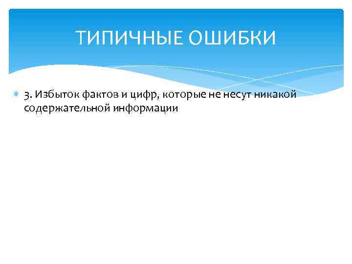 ТИПИЧНЫЕ ОШИБКИ 3. Избыток фактов и цифр, которые не несут никакой содержательной информации