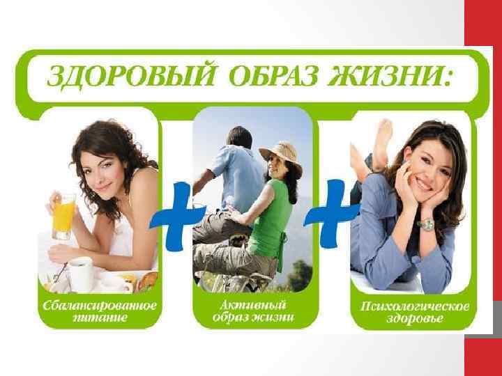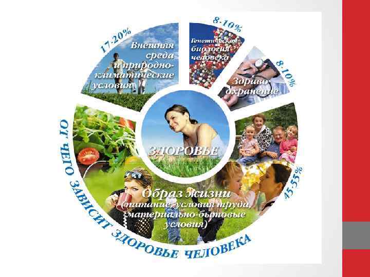 ВОЗ: 6 составляющих образа жизни, наиболее негативно влияющих на здоровье q Психосоциальный стресс q Нездоровое питание q Злоупотребление алкоголем q Курение q Низкая физическая активность q Употребление наркотиков (алкоголь, табак, психоактивные вещества)