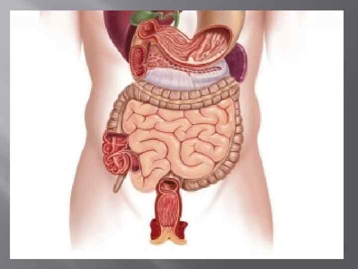 СИМПТОМЫ БОЛЕЗНЕЙ ЖКТ ТОШНОТА Кишечник человек – схематически Определить этот симптом можно как неприятное ощущение, которое сопровождается повышенным слюноотделением, общей слабостью, низким давлением и локализуется в подложечной области. В случае заболеваний ЖКТ, этот симптом является рефлекторным, что говорит о раздраженности рецепторов в желудке, либо желчевыводящих путях. РВОТА Процесс, в результате которого происходит удалении содержимого желудка через рот. Если рвота вызвана в результате патологий желудочногокишечного тракта, то ее возникновение связано с теми же причинами, что и предыдущий симптом. Частая рвота грозит опасностью обезвоживания и возникновения электролитного дисбаланса в организме. Ссылка на источник: